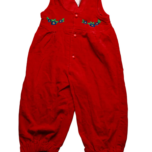 Unbranded Kids Velour Dungarees Red Age 12M